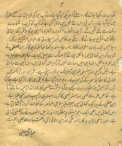Home - Paishras from Abbas Hussaini Paishras from Abbas Hussaini Abbas Hussaini Editorials from Imran Series The number shown under each Title Page reflect the novel's sequence number, shumara and date I006a I006b I008a I008b I011a I011b I015a I015b I020, Jun-71, second edition I021a I021b I022a I022b I028a I028b I029a I029b I031a, Aug-58 I031b I031c i038a i038b I043a I043b I053 I115a, Aug-80 I115b